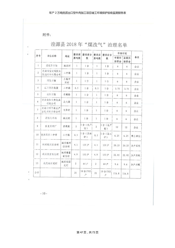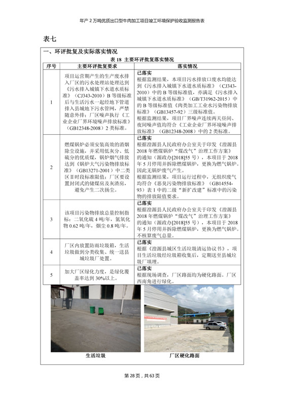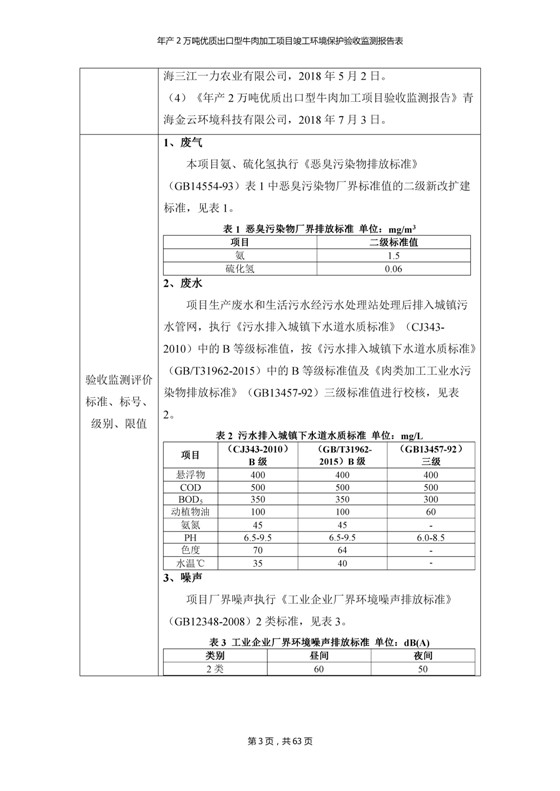 根據(jù)中華人民共和國(guó)國(guó)務(wù)院令第253號(hào)《建設(shè)項(xiàng)目環(huán)境保護(hù)管理?xiàng)l例》(中華人民共和國(guó)國(guó)務(wù)院令第682號(hào)《國(guó)務(wù)院關(guān)于修改〈建設(shè)項(xiàng)目環(huán)境保護(hù)管理?xiàng)l例〉的決定》和《建設(shè)項(xiàng)目竣工環(huán)境保護(hù)驗(yàn)收暫行辦法》,嚴(yán)格依照有關(guān)法律法規(guī),建設(shè)項(xiàng)目環(huán)境保護(hù)設(shè)施驗(yàn)收技術(shù)規(guī)范,本項(xiàng)目環(huán)評(píng)報(bào)告表和環(huán)保審批部門審批意見以及企業(yè)自行驗(yàn)收相關(guān)要求等對(duì)本項(xiàng)目進(jìn)行驗(yàn)收,本項(xiàng)目符合環(huán)保驗(yàn)收條件,可以通過環(huán)保驗(yàn)收。 青海三江一力農(nóng)業(yè)有限公司組織召開年產(chǎn)2萬(wàn)噸優(yōu)質(zhì)出口型牛肉加工項(xiàng)目(一期工程)驗(yàn)收組意見.