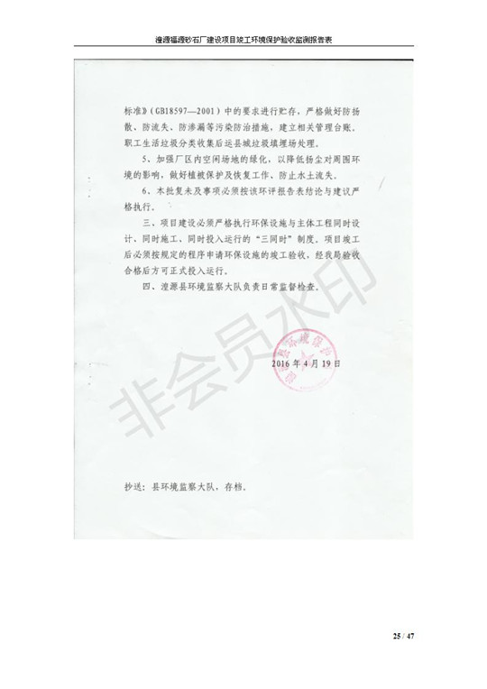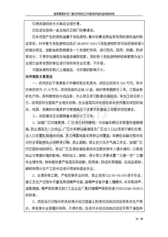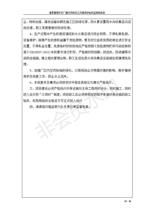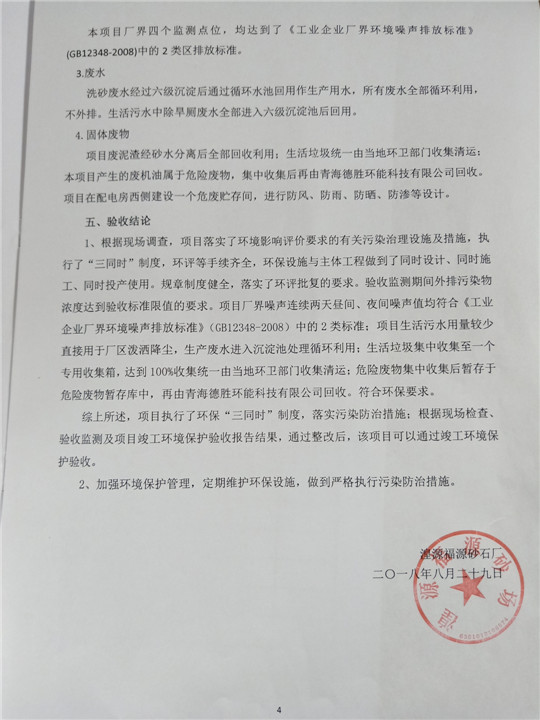 根據(jù)中華人民共和國國務(wù)院令第253號《建設(shè)項(xiàng)目環(huán)境保護(hù)管理?xiàng)l例》(中華人民共和國國務(wù)院令第682號《國務(wù)院關(guān)于修改〈建設(shè)項(xiàng)目環(huán)境保護(hù)管理?xiàng)l例〉的決定》和《建設(shè)項(xiàng)目竣工環(huán)境保護(hù)驗(yàn)收暫行辦法》,嚴(yán)格依照有關(guān)法律法規(guī),建設(shè)項(xiàng)目環(huán)境保護(hù)設(shè)施驗(yàn)收技術(shù)規(guī)范,本項(xiàng)目環(huán)評報(bào)告表和環(huán)保審批部門審批意見以及企業(yè)自行驗(yàn)收相關(guān)要求等對本項(xiàng)目進(jìn)行驗(yàn)收,本項(xiàng)目符合環(huán)保驗(yàn)收條件,可以通過環(huán)保驗(yàn)收。 湟源福砂廠建設(shè)項(xiàng)目竣工環(huán)境保護(hù)驗(yàn)收意見