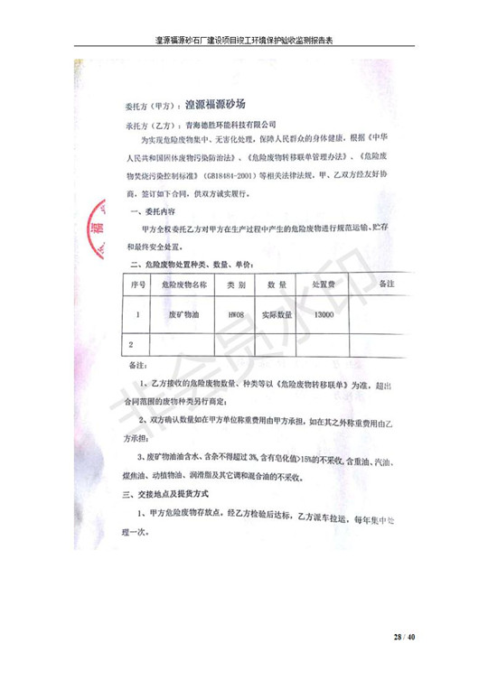湟源福砂廠建設(shè)項(xiàng)目竣工環(huán)境保護(hù)驗(yàn)收發(fā)布日期:(2018-9-6) 點(diǎn)擊次數(shù):2099 |
