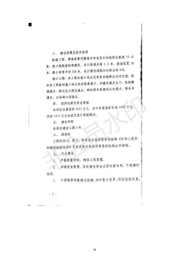 黃河公伯峽(康楊電站至公伯峽水庫段)航運建設工程