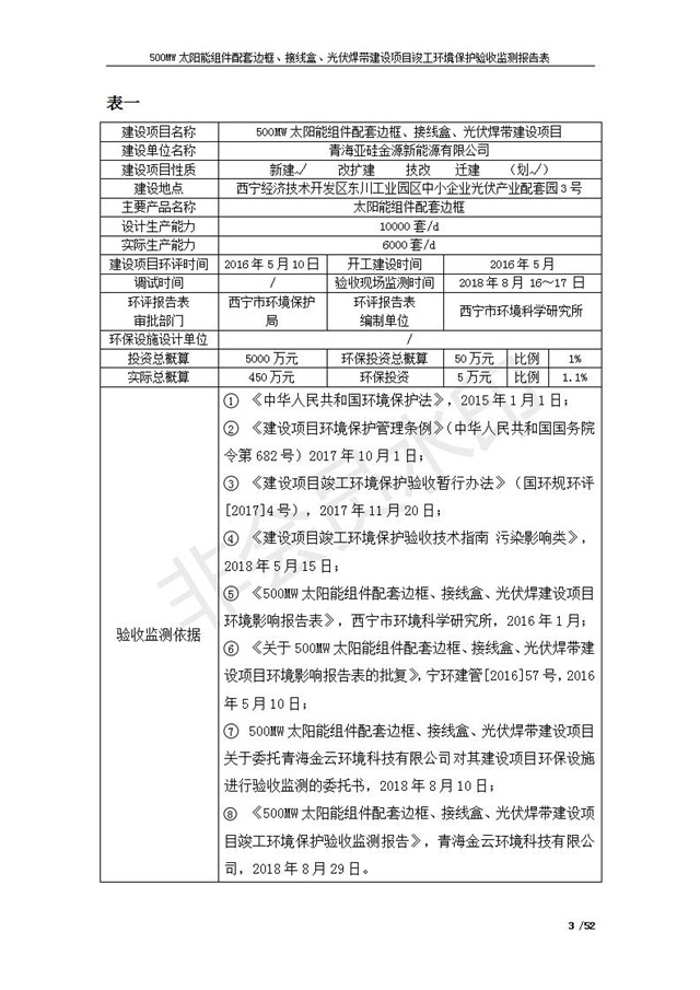 500MW太陽能組件配套邊框、接線盒、光伏焊帶建設項目竣工環(huán)境保護驗收監(jiān)測報告表公示