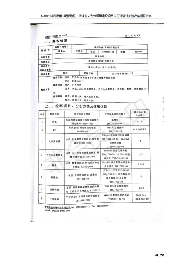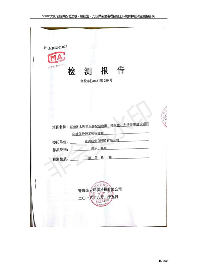500MW太陽能組件配套邊框、接線盒、光伏焊帶建設項目竣工環(huán)境保護驗收監(jiān)測報告表公示發(fā)布日期:(2018-11-16) 點擊次數(shù):2158 |