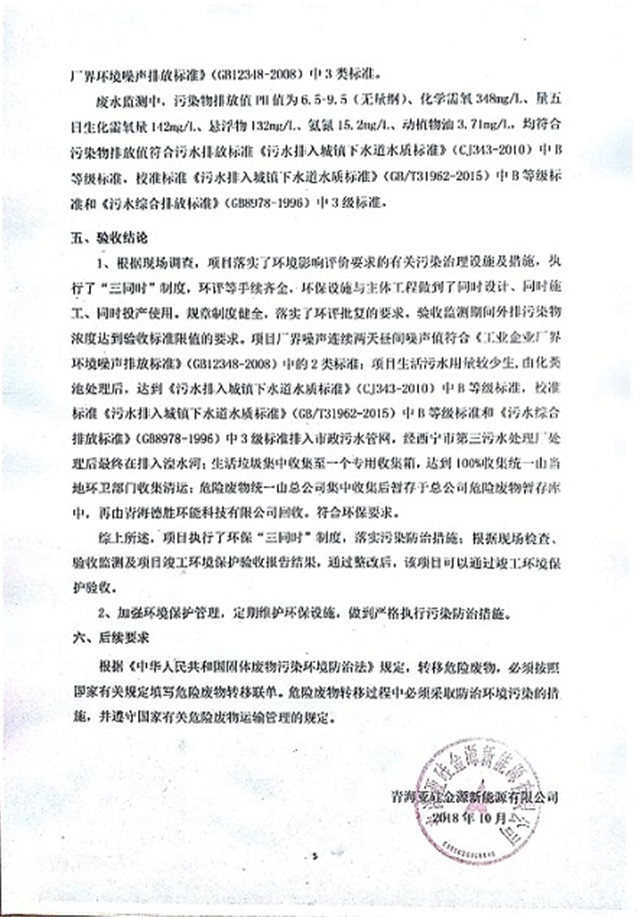 根據(jù)中華人民共和國國務院令第253號《建設項目環(huán)境保護管理條例》(中華人民共和國國務院令第682號《國務院關于修改〈建設項目環(huán)境保護管理條例〉的決定》和《建設項目竣工環(huán)境保護驗收暫行辦法》,嚴格依照有關法律法規(guī),建設項目環(huán)境保護設施驗收技術規(guī)范,本項目環(huán)評報告表和環(huán)保審批部門審批意見以及企業(yè)自行驗收相關要求等對本項目進行驗收,本項目符合環(huán)保驗收條件,可以通過環(huán)保驗收。 現(xiàn)將本項目竣工環(huán)境保護驗收情況進行公開,并征求公眾意見。一、征求意見日期:自公示之日起20個工作日 二、征求意見期間,驗收組接受反映公示的建設項目竣工環(huán)境保護驗收情況和問題的來信、來訪和來電。 三、聯(lián)系方式 聯(lián)系人:張工 電 話:15297122093 通訊地址:青海省西寧市城北區(qū)經(jīng)四路創(chuàng)新創(chuàng)業(yè)大廈22號