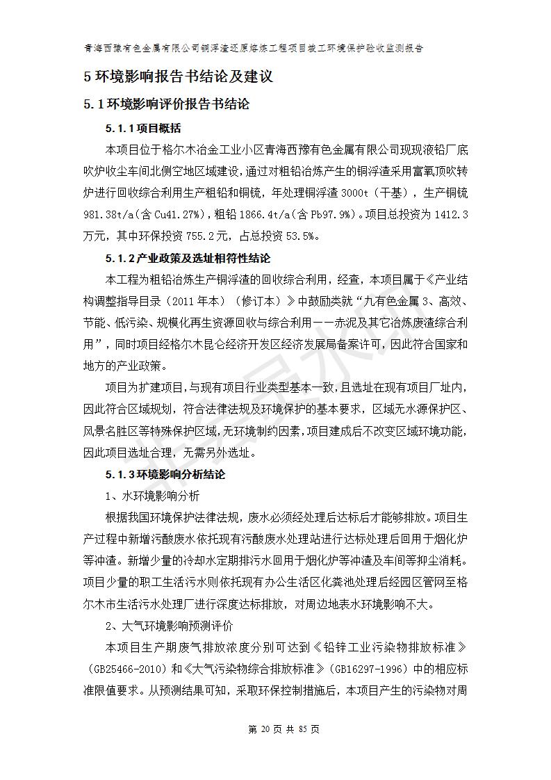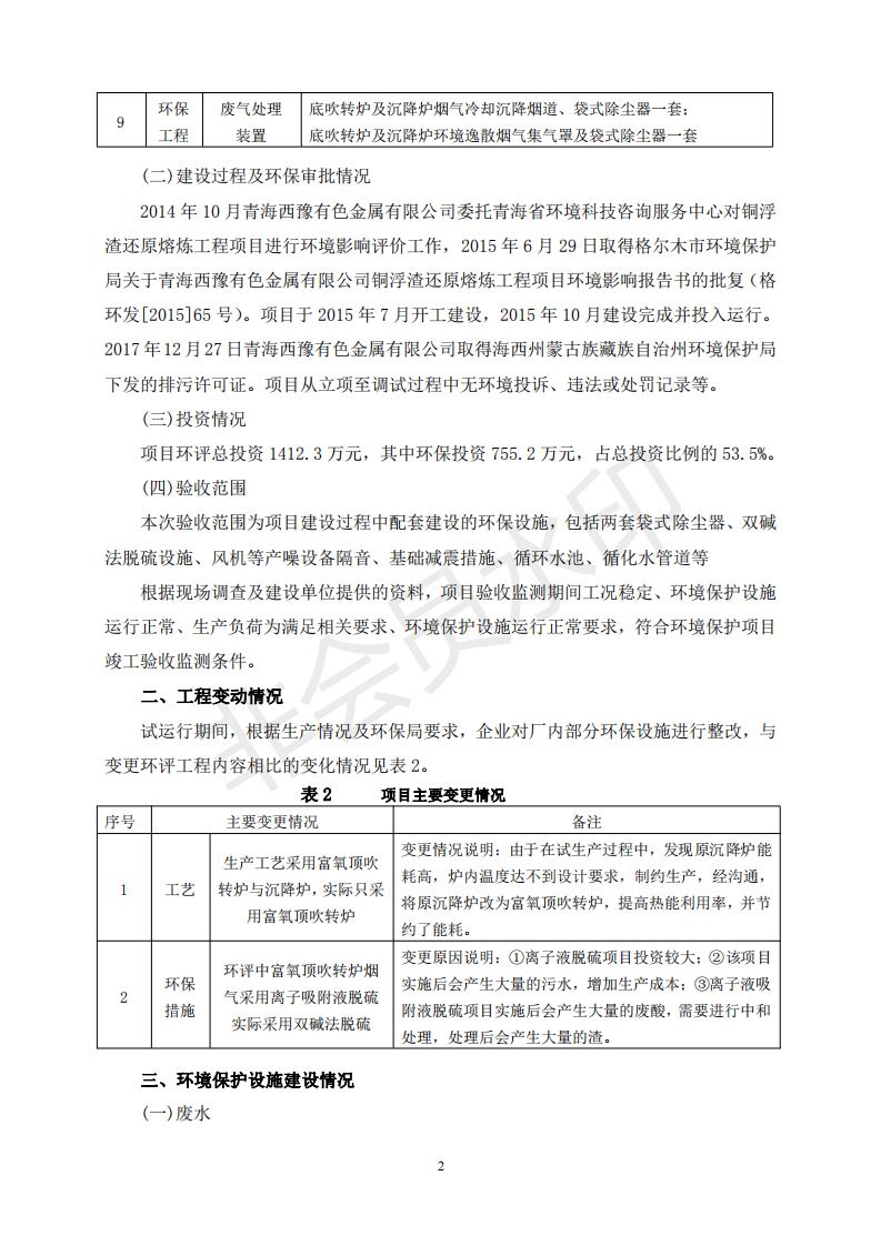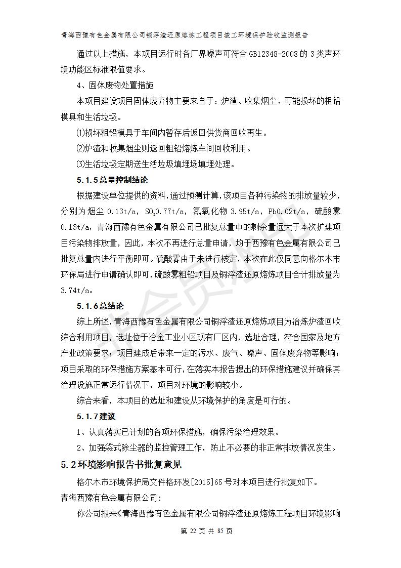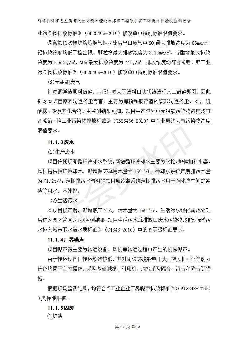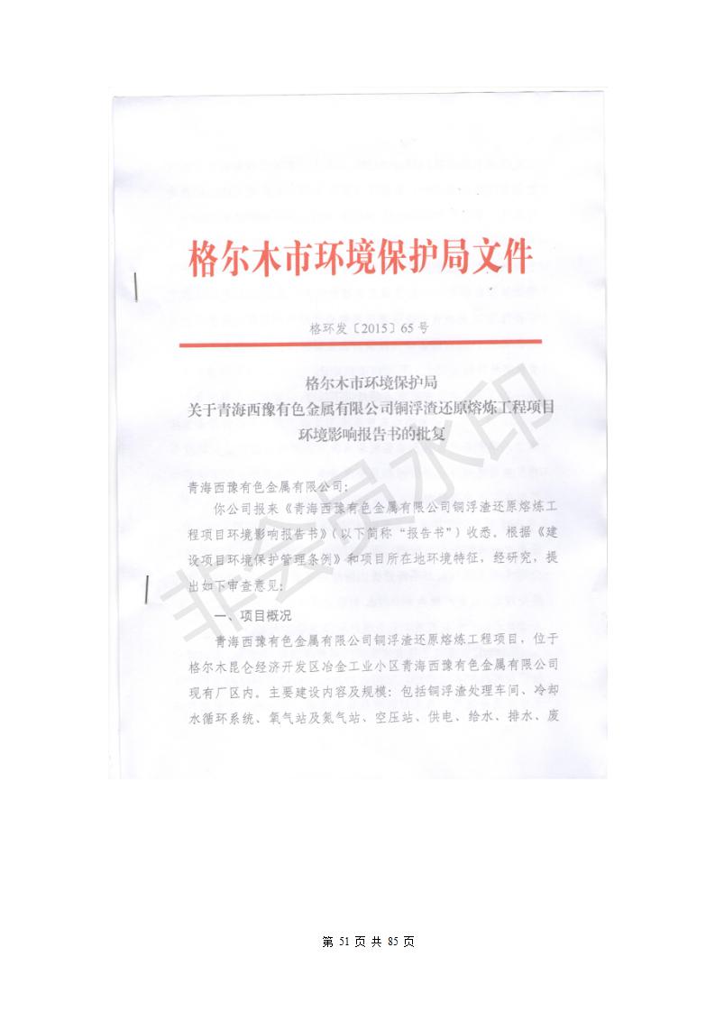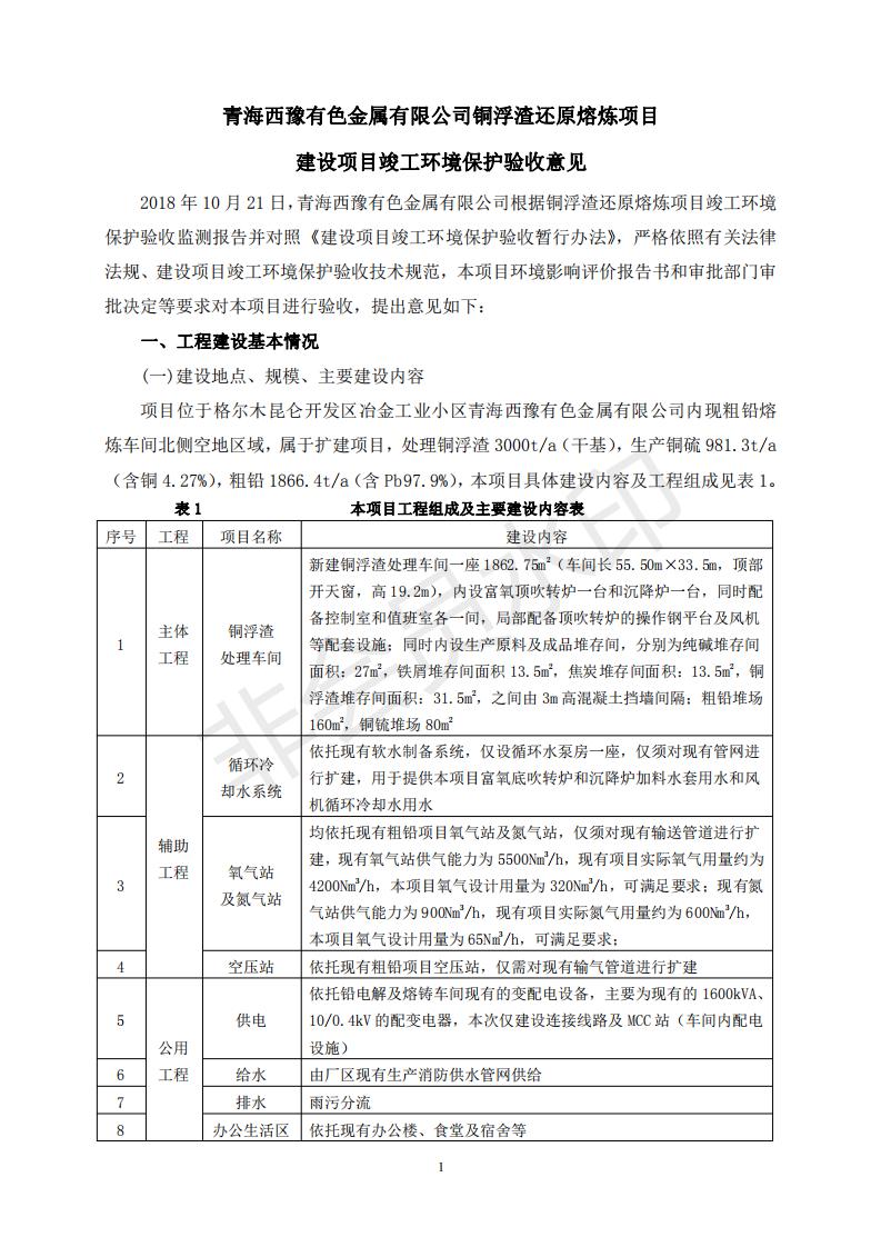 青海西豫有色金屬有限公司銅浮渣還原熔煉工程項目竣工環(huán)境保護驗收監(jiān)測報告公示發(fā)布日期:(2018-11-23) 點擊次數(shù):2638 |