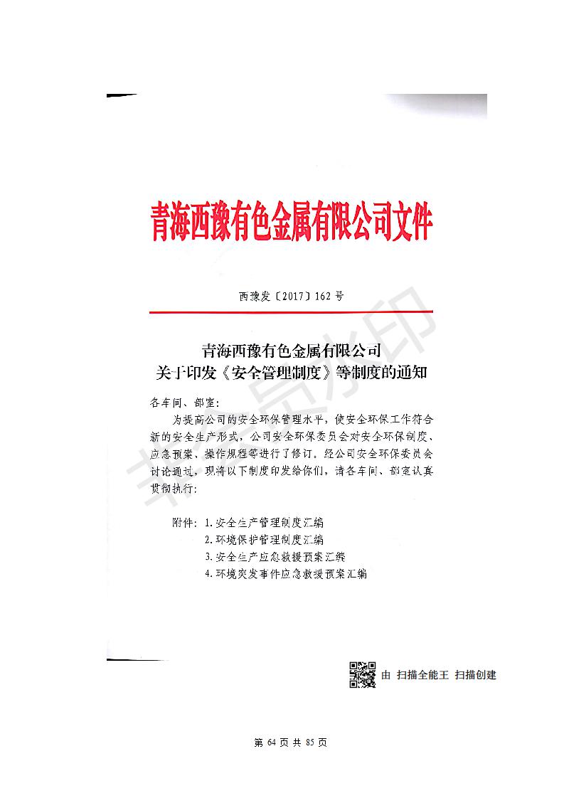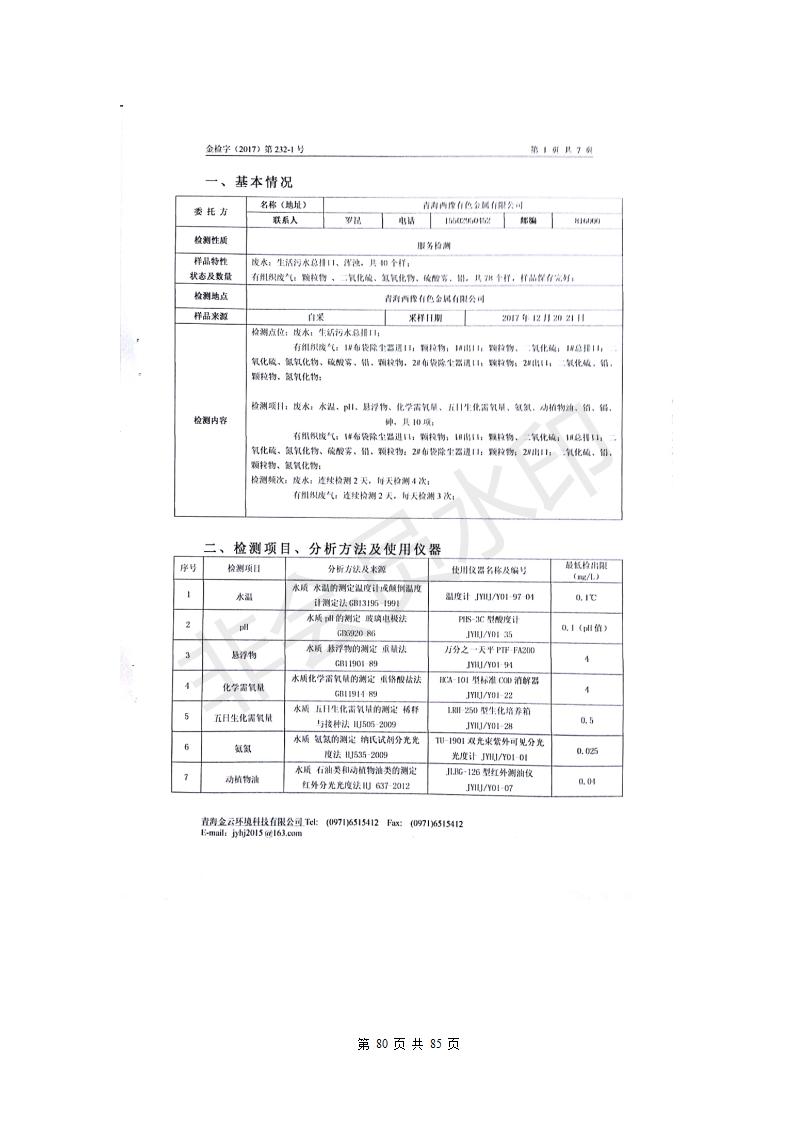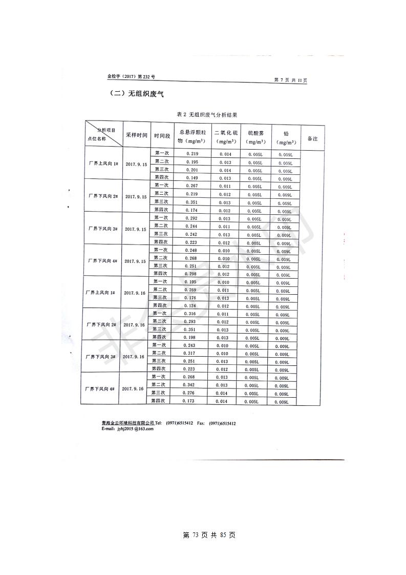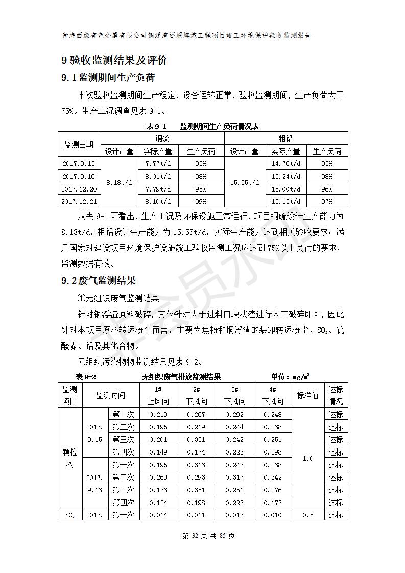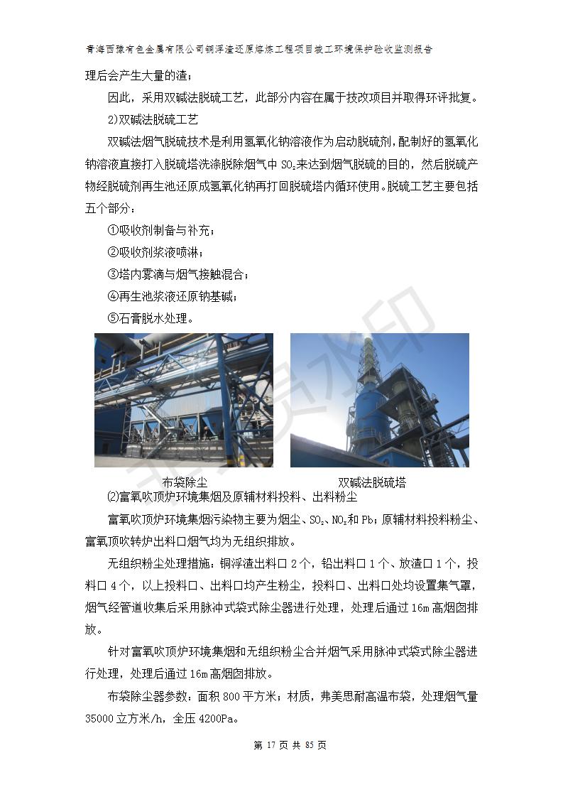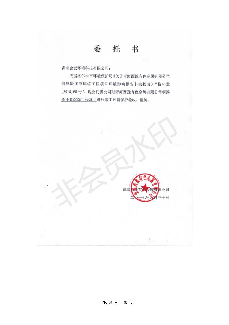 青海西豫有色金屬有限公司銅浮渣還原熔煉工程項目竣工環(huán)境保護驗收監(jiān)測報告公示發(fā)布日期:(2018-11-23) 點擊次數(shù):2638 |