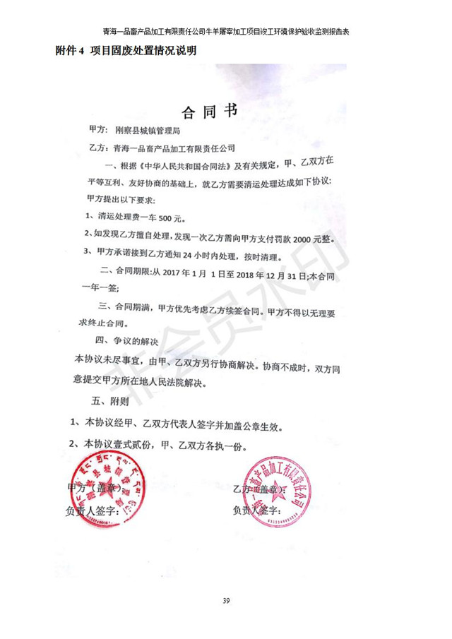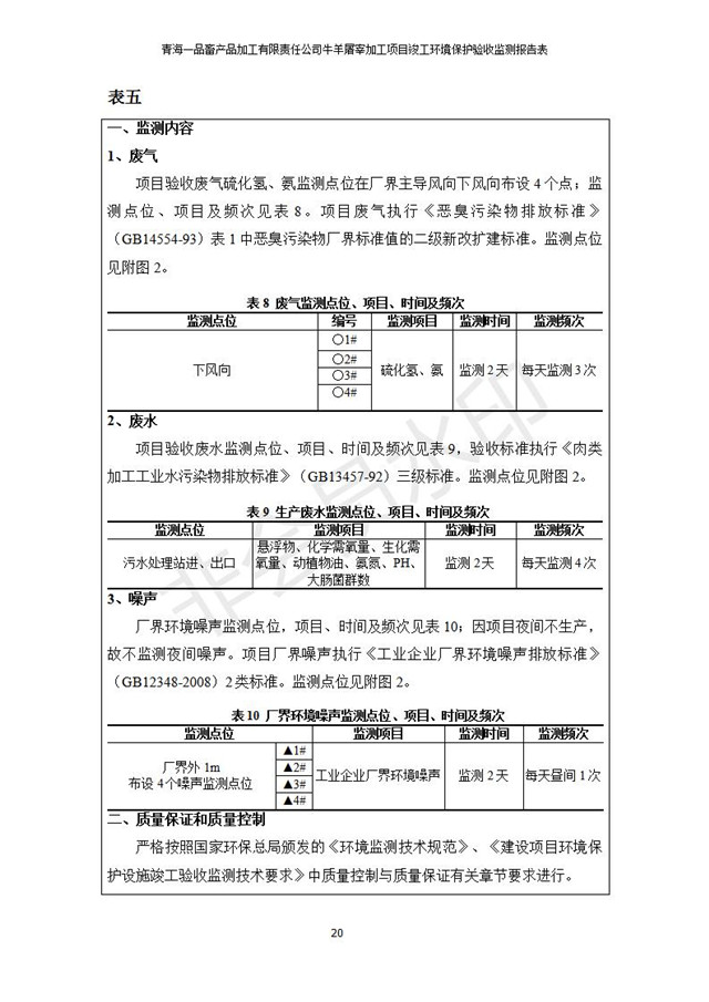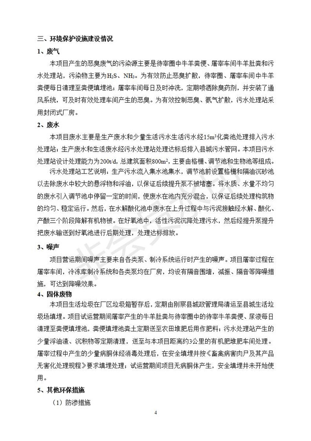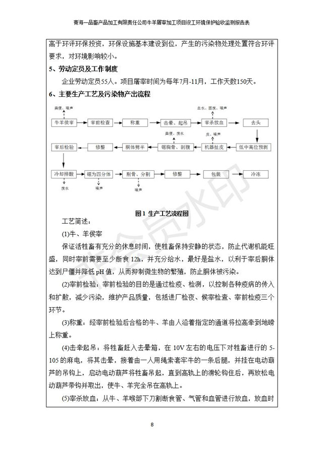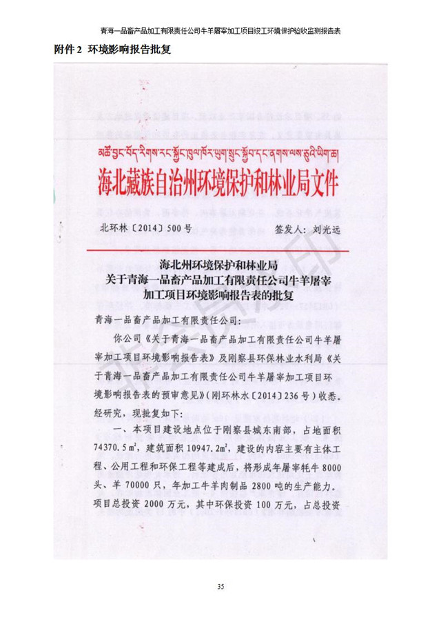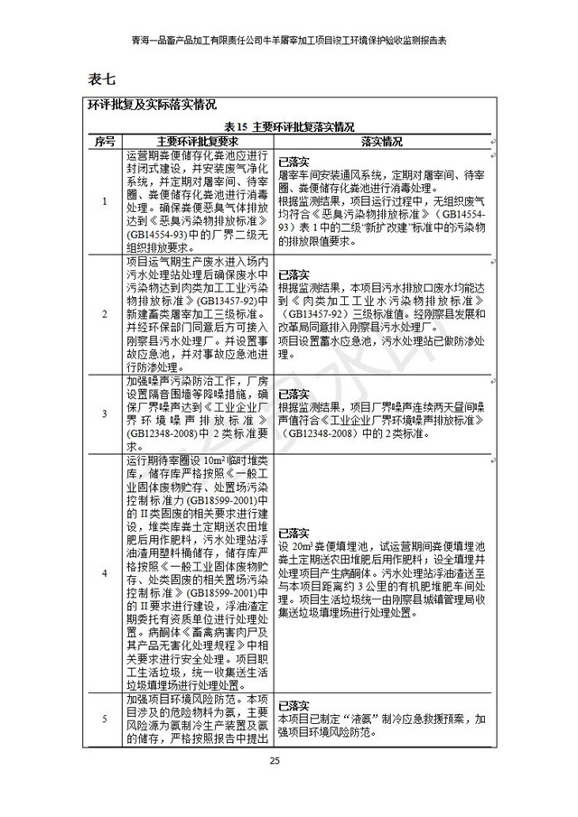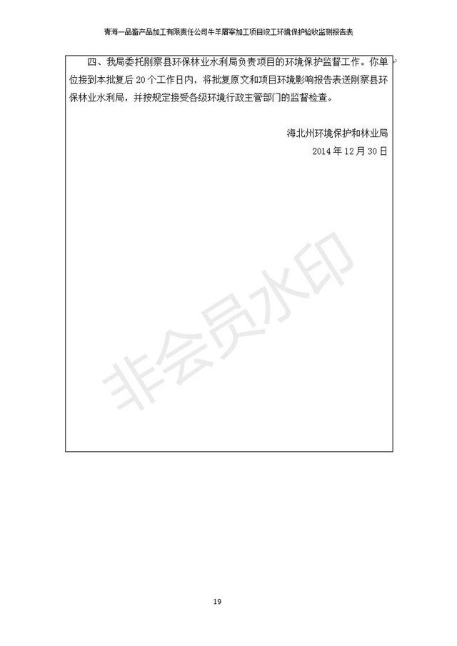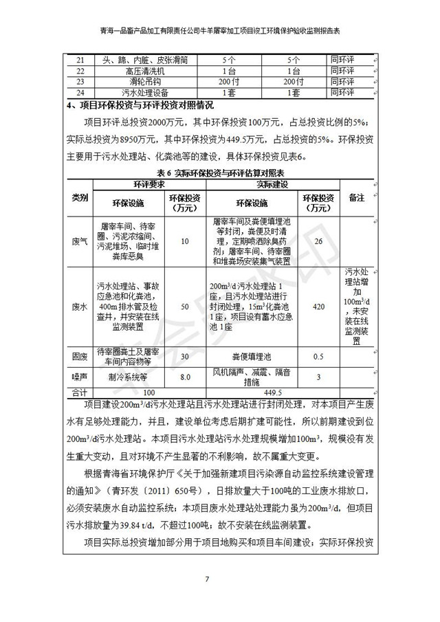 根據(jù)中華人民共和國(guó)國(guó)務(wù)院令第682號(hào)《國(guó)務(wù)院關(guān)于修改〈建設(shè)項(xiàng)目環(huán)境保護(hù)管理?xiàng)l例〉的決定》和《建設(shè)項(xiàng)目竣工環(huán)境保護(hù)驗(yàn)收暫行辦法》(國(guó)務(wù)院令682號(hào)),青海一品畜產(chǎn)品加工有限責(zé)任公司牛羊屠宰加工項(xiàng)目(包括竣工環(huán)境保護(hù)驗(yàn)收監(jiān)測(cè)報(bào)告表和驗(yàn)收意見(jiàn))公示如下。 一、項(xiàng)目名稱(chēng):青海一品畜產(chǎn)品加工有限責(zé)任公司牛羊屠宰加工項(xiàng)目竣工環(huán)境保護(hù)驗(yàn)收監(jiān)測(cè)報(bào)告表 二、地點(diǎn):剛察縣縣城東大街加油站東側(cè) 三、建設(shè)單位:青海一品畜產(chǎn)品加工有限責(zé)任公司 四、建設(shè)內(nèi)容:項(xiàng)目地面積17453m2,項(xiàng)目建設(shè)內(nèi)容包括牛羊屠宰車(chē)間、牛羊肉加工車(chē)間、冷庫(kù)、辦公區(qū)、污水處理站等。 五、聯(lián)系人:張工 七、公示時(shí)間:二〇一九年一月十一日至二〇一九年二月七日 公示期間,對(duì)上述公示內(nèi)容如有異議,請(qǐng)以書(shū)面形式反饋,個(gè)人須署真實(shí)姓名,單位須加蓋公章。