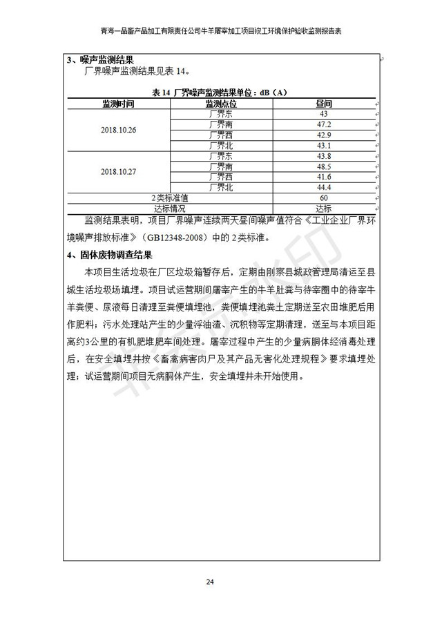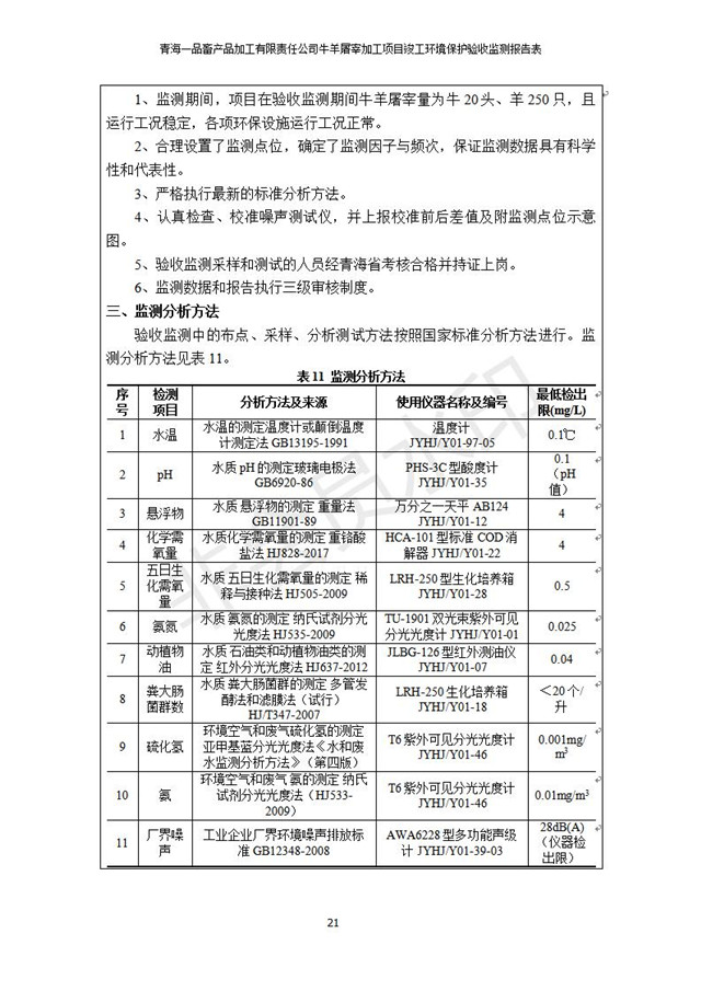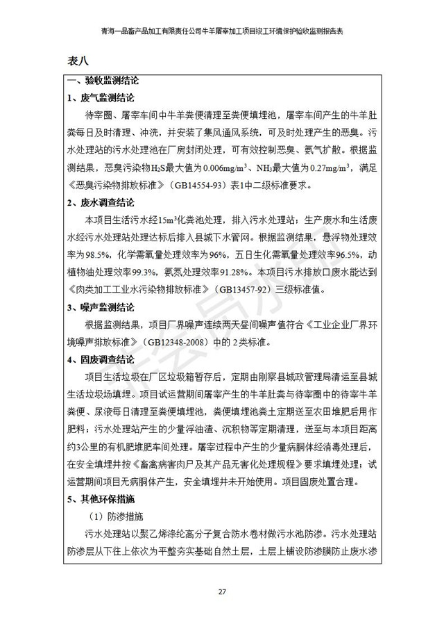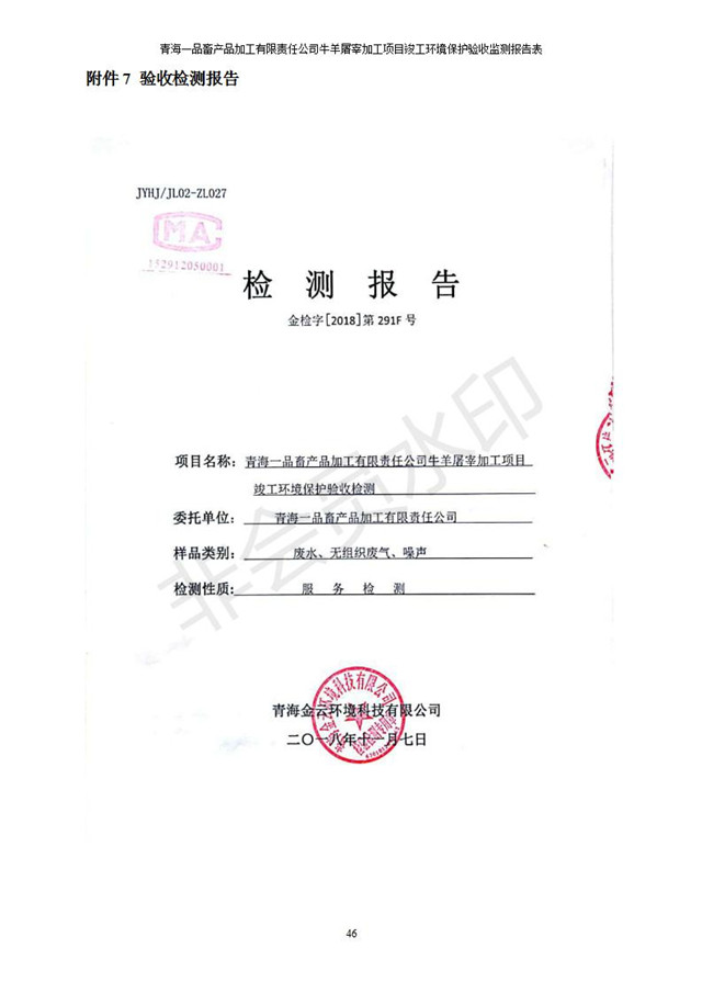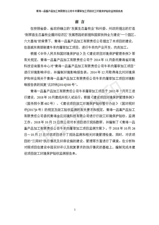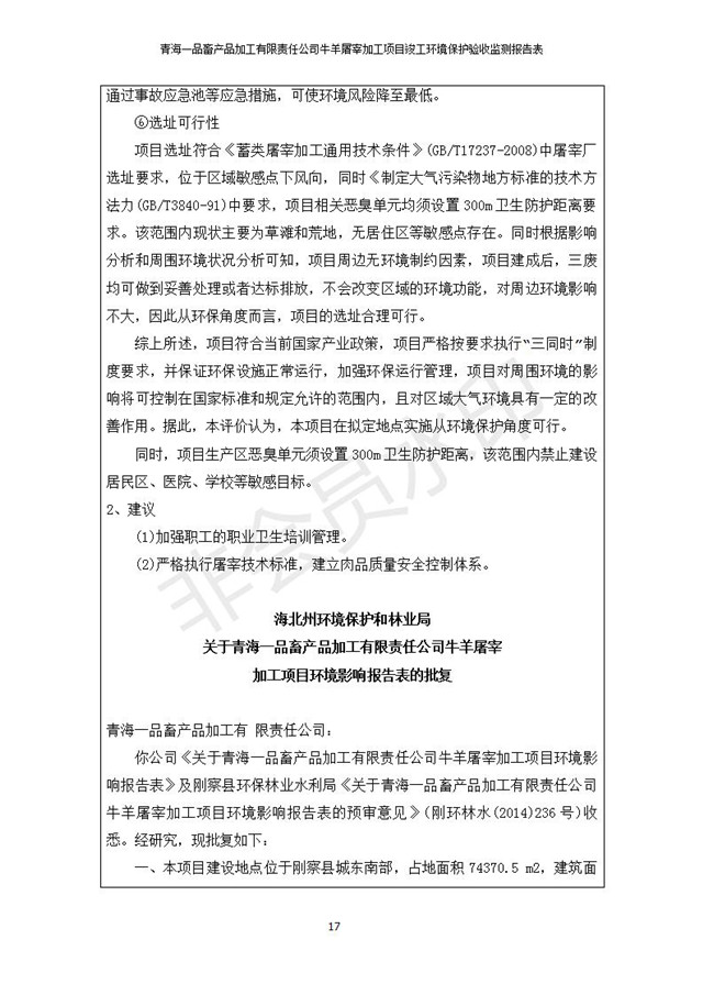 青海一品畜產(chǎn)品加工有限責(zé)任公司牛羊屠宰加工項(xiàng)目 竣工環(huán)境保護(hù)驗(yàn)收監(jiān)測(cè)報(bào)告表公示發(fā)布日期:(2019-1-11) 點(diǎn)擊次數(shù):3109 |