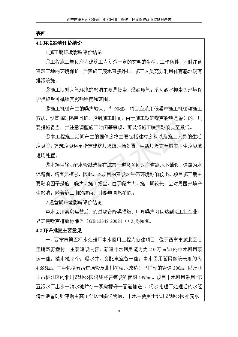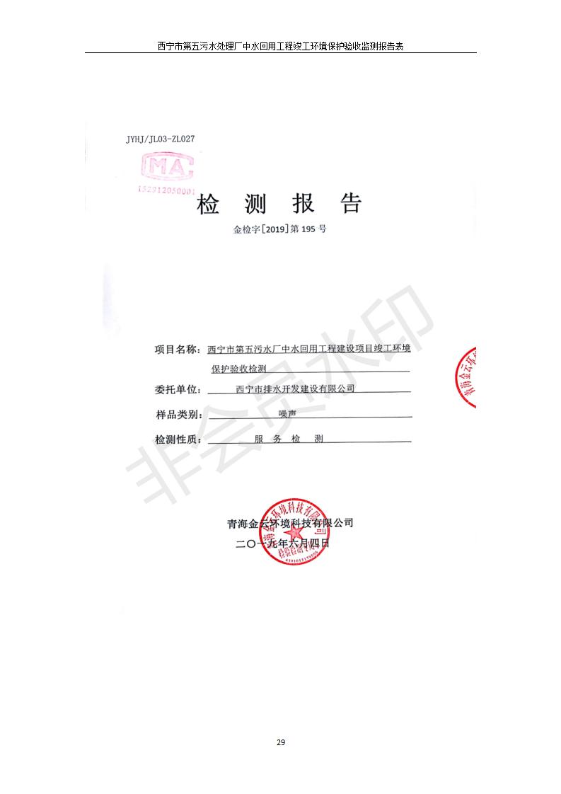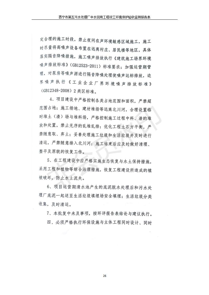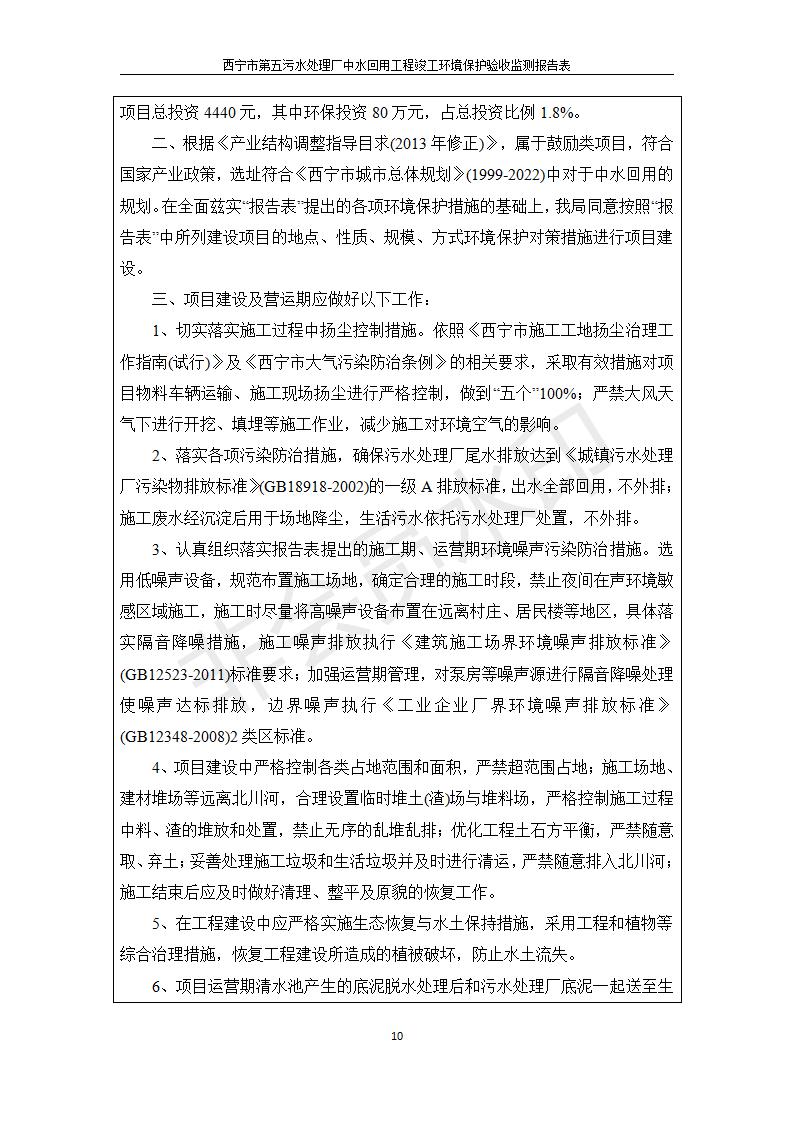 根據(jù)中華人民共和國國務(wù)院令第682號《國務(wù)院關(guān)于修改〈建設(shè)項目環(huán)境保護管理條例〉的決定》和《建設(shè)項目竣工環(huán)境保護驗收暫行辦法》(國務(wù)院令682號),西寧市第五污水處理廠中水回用工程建設(shè)項目(包括竣工環(huán)境保護驗收監(jiān)測報告表和驗收意見)公示如下。 一、項目名稱:西寧市第五污水處理廠中水回用工程建設(shè)項目 二、地點:西寧市城北區(qū)廿十里鋪雙蘇堡 三、建設(shè)單位:西寧市排水開發(fā)建設(shè)有限公司