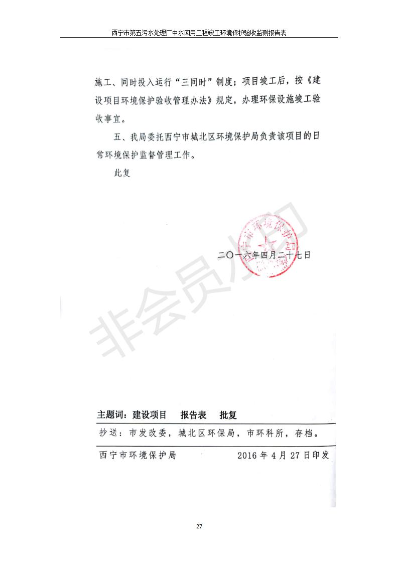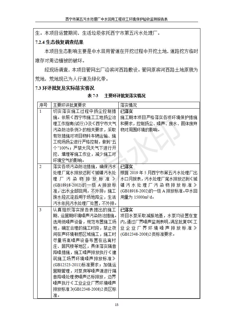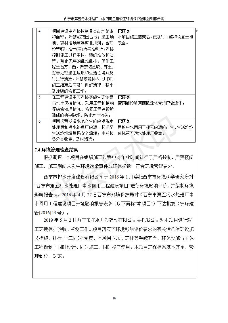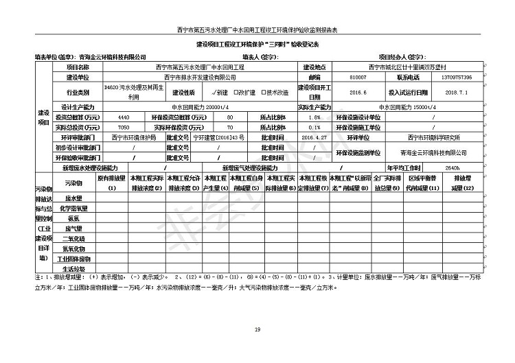 西寧市第五污水處理廠中水回用工程建設(shè)項目竣工環(huán)境保護驗收監(jiān)測報告表公示發(fā)布日期:(2019-7-10) 點擊次數(shù):2381 |