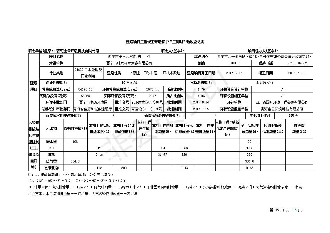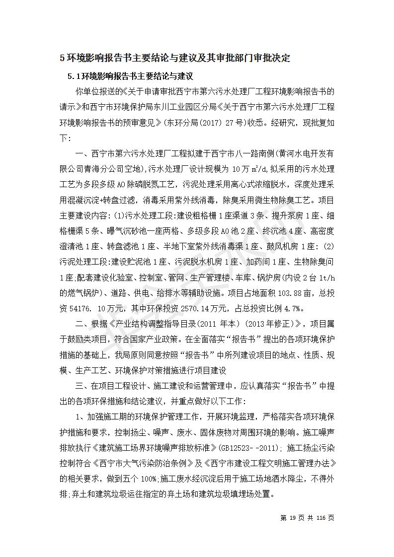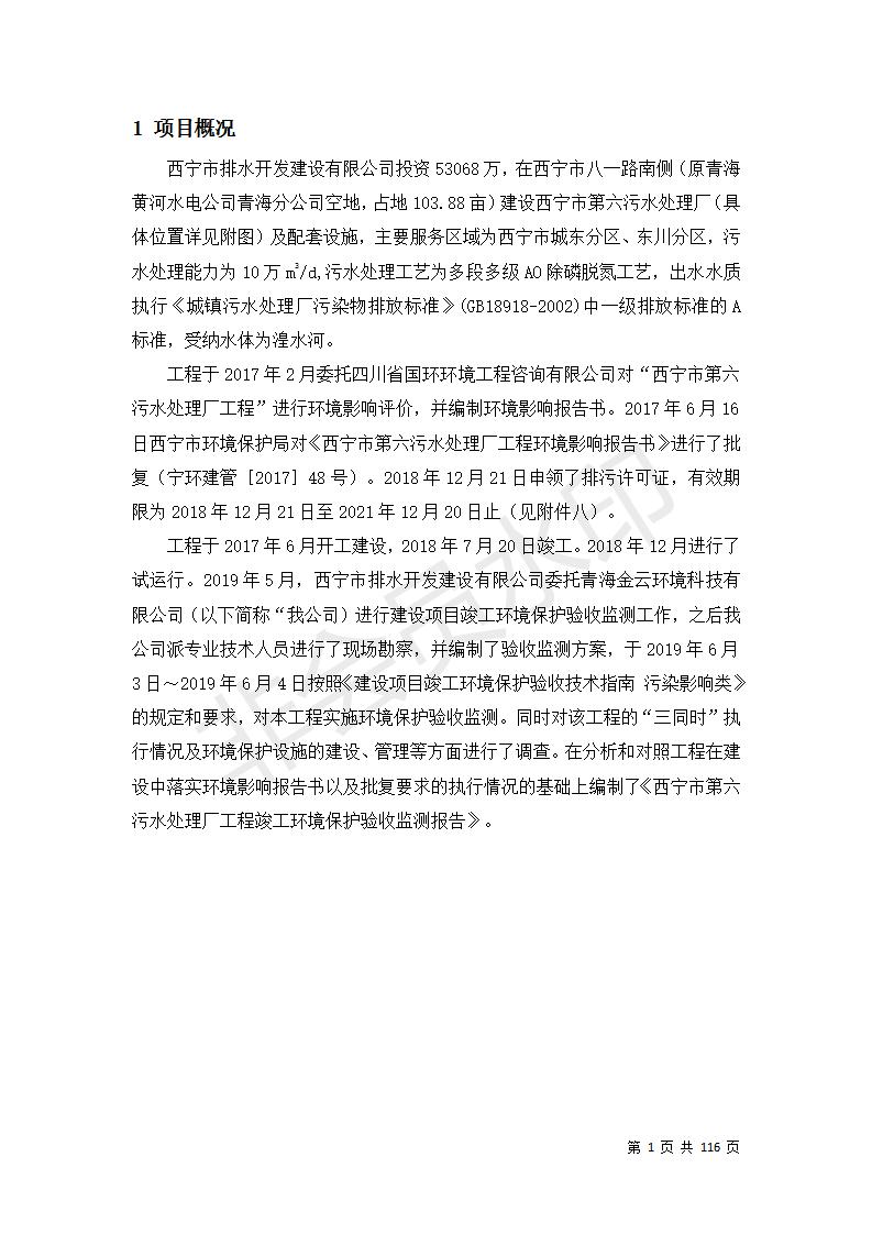 西寧市第六污水處理廠工程竣工環(huán)境保護(hù)驗(yàn)收公示發(fā)布日期:(2019-7-11) 點(diǎn)擊次數(shù):2748 |