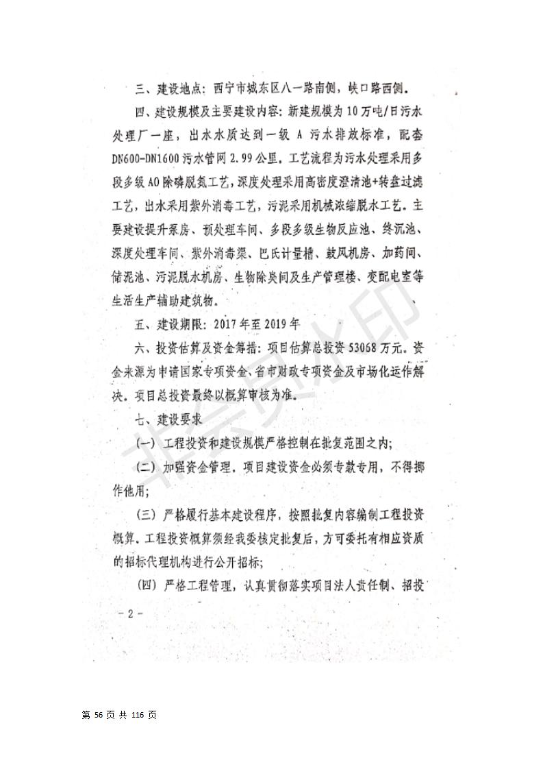 根據(jù)中華人民共和國國務(wù)院令第682號(hào)《國務(wù)院關(guān)于修改〈建設(shè)項(xiàng)目環(huán)境保護(hù)管理?xiàng)l例〉的決定》和《建設(shè)項(xiàng)目竣工環(huán)境保護(hù)驗(yàn)收暫行辦法》(國務(wù)院令682號(hào)),西寧市第六污水處理廠工程(包括竣工環(huán)境保護(hù)驗(yàn)收監(jiān)測報(bào)告和驗(yàn)收意見)公示如下。 一、項(xiàng)目名稱:西寧市第六污水處理廠工程 二、地點(diǎn):西寧市第六污水處理廠工程建于西寧市八一路南側(cè)(黃河水電開發(fā)有限公司青海分公司空地) 三、建設(shè)單位:西寧市排水開發(fā)建設(shè)有限公司 四、建設(shè)內(nèi)容:處理生活污水規(guī)模為10萬m3/d污水處理廠、輔助設(shè)施、環(huán)保設(shè)施等。 五、聯(lián)系人:張工 六、聯(lián)系電話:0971-6515411 七、公示時(shí)間:二〇一九年七月十一日至二〇一九年八月七日 公示期間,對上述公示內(nèi)容如有異議,請以書面形式反饋,個(gè)人須署真實(shí)姓名,單位須加蓋公章。