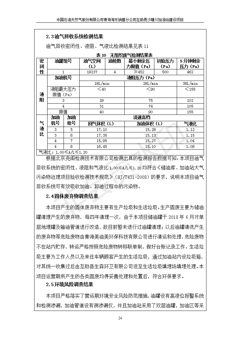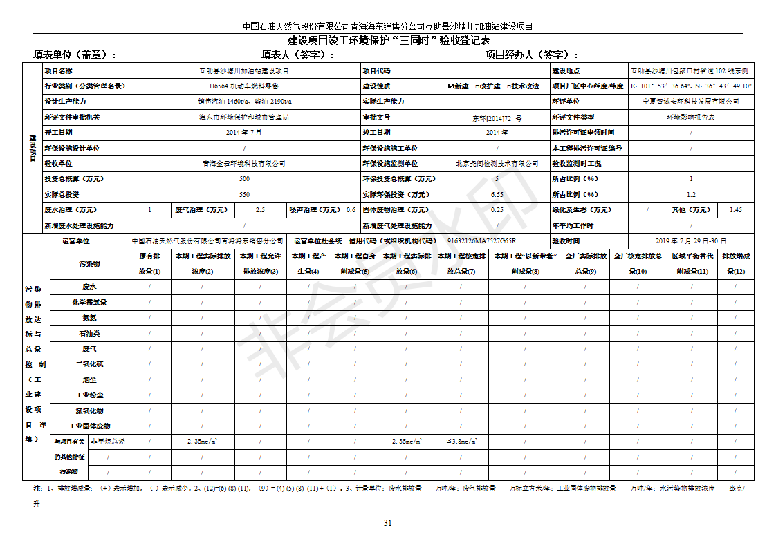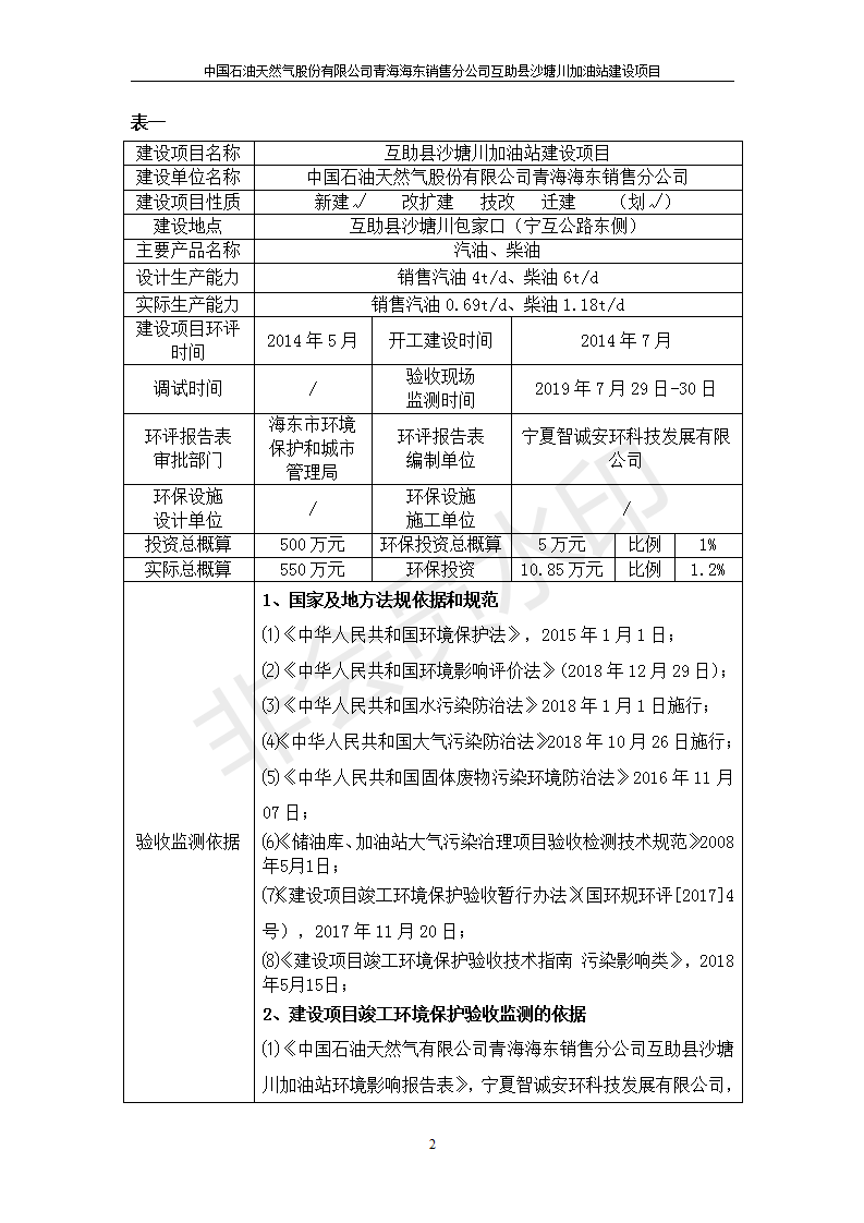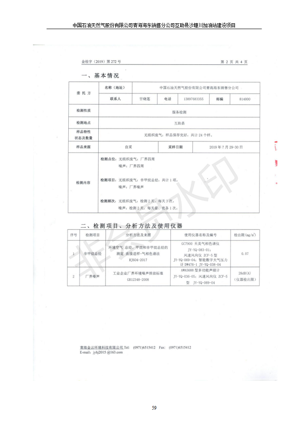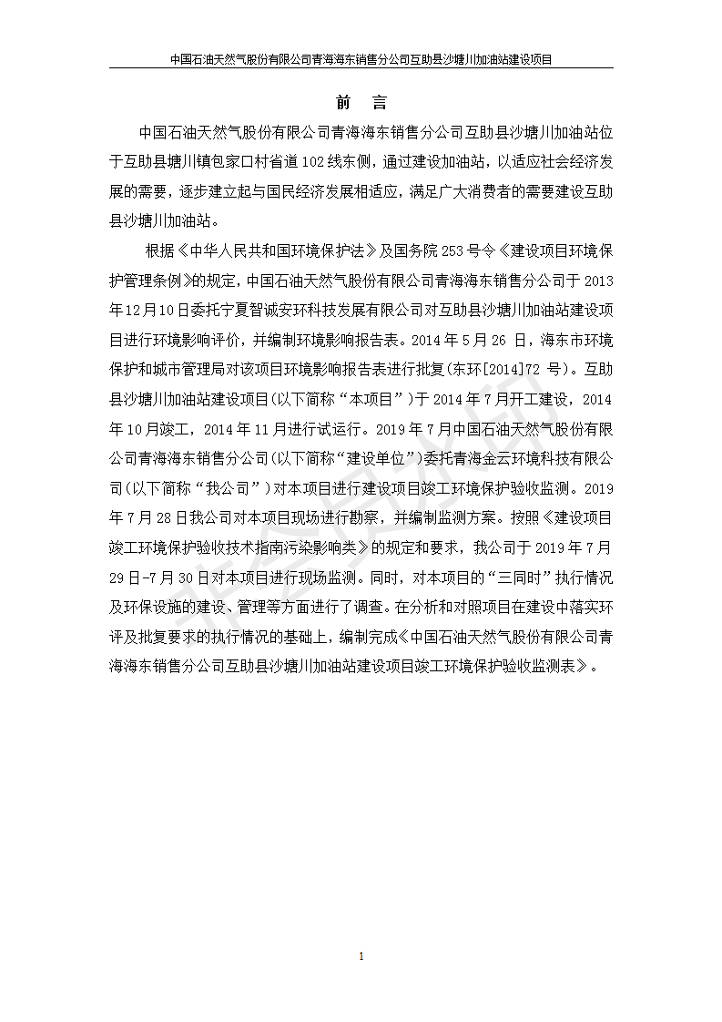 互助縣沙塘川加油站建設(shè)項目竣工環(huán)境保護驗收監(jiān)測報告表發(fā)布日期:(2019-9-27) 點擊次數(shù):2199 |