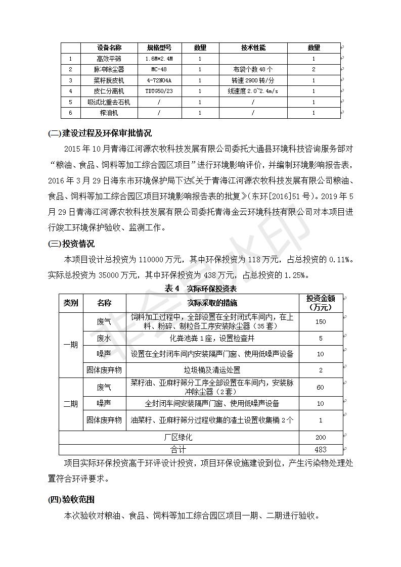 根據(jù)中華人民共和國國務院令第682號《國務院關于修改〈建設項目環(huán)境保護管理條例〉的決定》和《建設項目竣工環(huán)境保護驗收暫行辦法》(國務院令682號),糧油、食品、飼料等加工綜合園區(qū)項目竣工環(huán)境保護驗收監(jiān)測報告表(包括竣工環(huán)境保護驗收監(jiān)測報告表和驗收意見)公示如下。 一、項目名稱:糧油、食品、飼料等加工綜合園區(qū)項目 二、地點:河湟新區(qū)(海東工業(yè)園區(qū)臨空綜合經(jīng)濟園) 六、聯(lián)系電話:0971-6515411 七、公示時間:二〇一九年十月九日至二〇一九年十一月五日 公示期間,對上述公示內容如有異議,請以書面形式反饋,個人須署真實姓名,單位須加蓋公章。