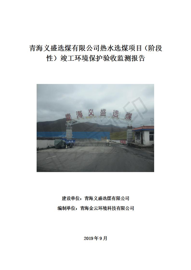 青海義盛選煤有限公司熱水選煤項(xiàng)目(階段性)竣工環(huán)境保護(hù)驗(yàn)收發(fā)布日期:(2019-11-12) 點(diǎn)擊次數(shù):2204 |