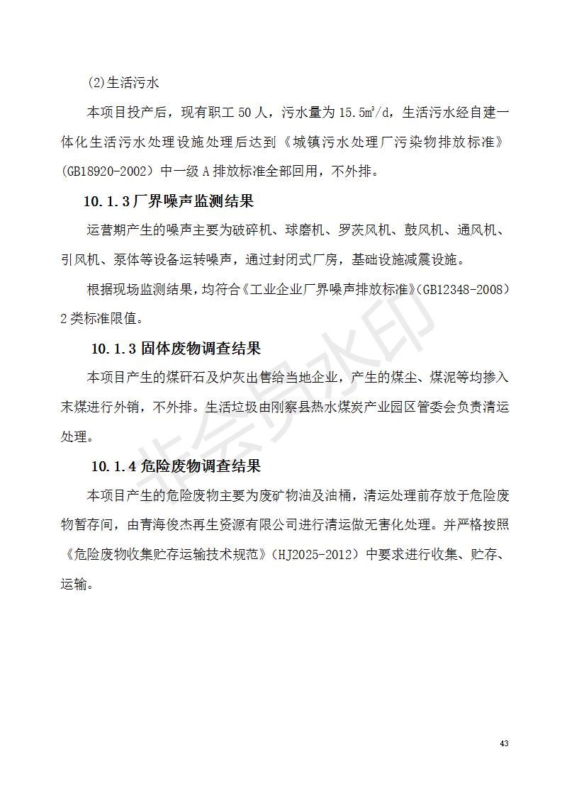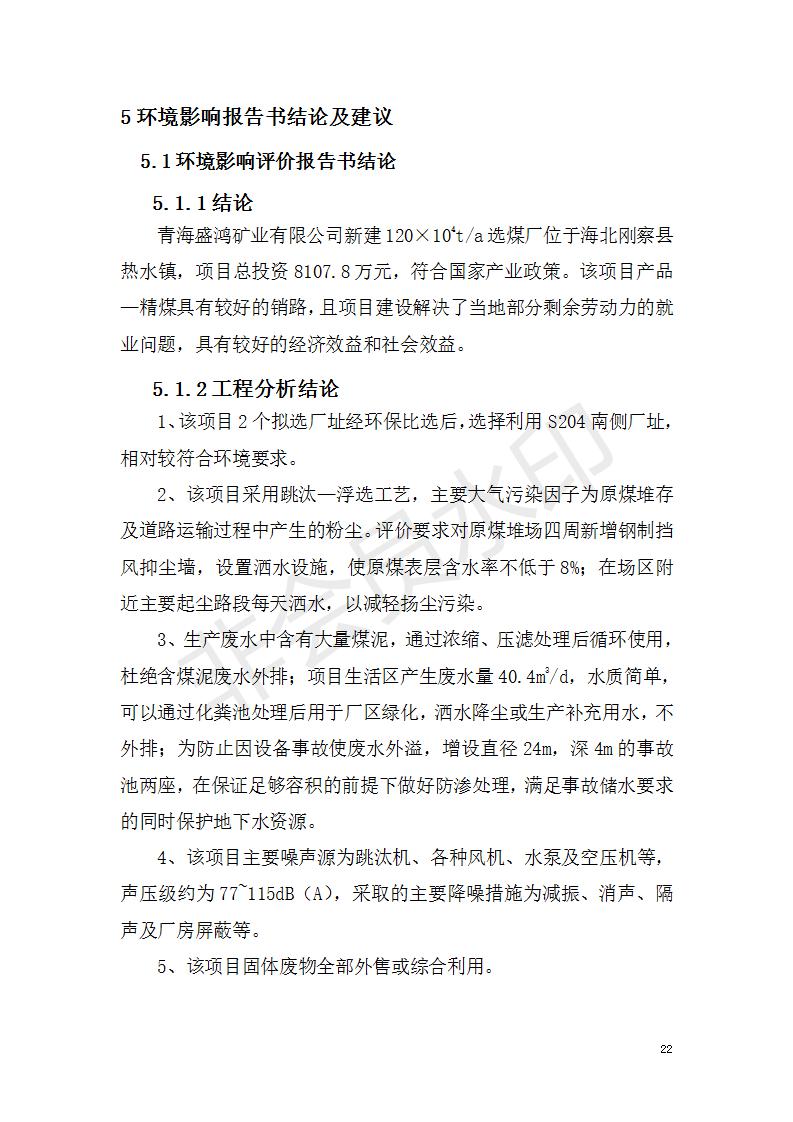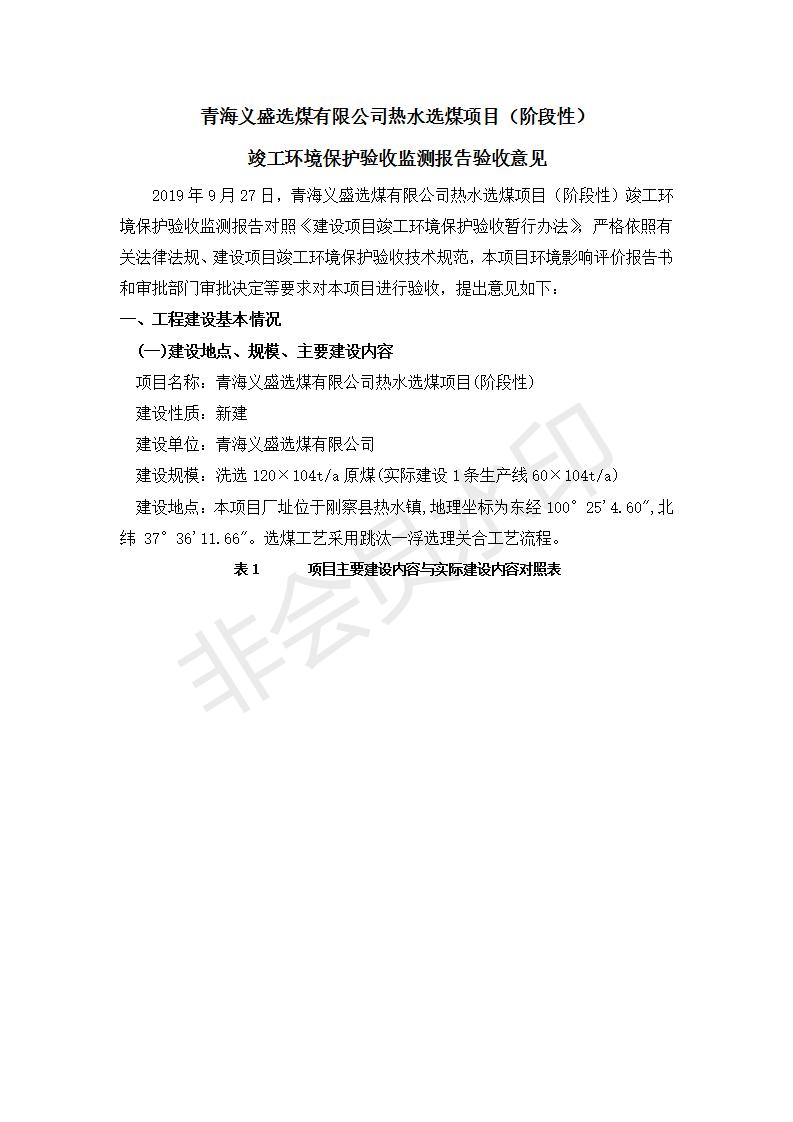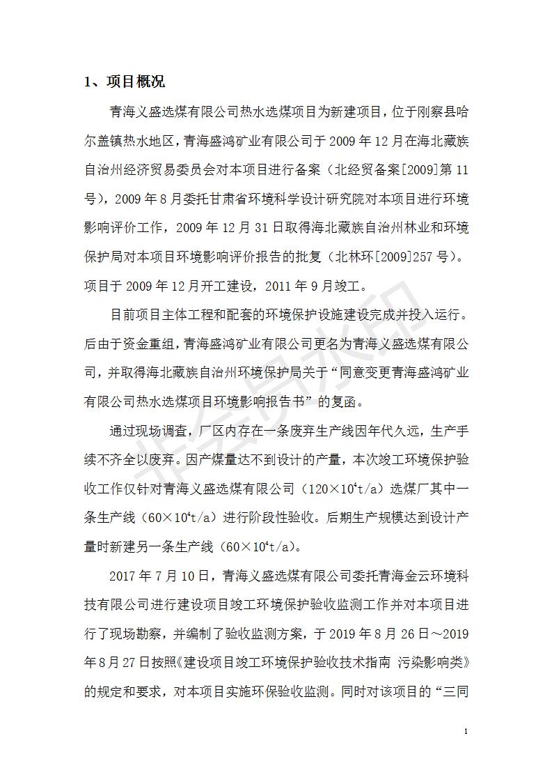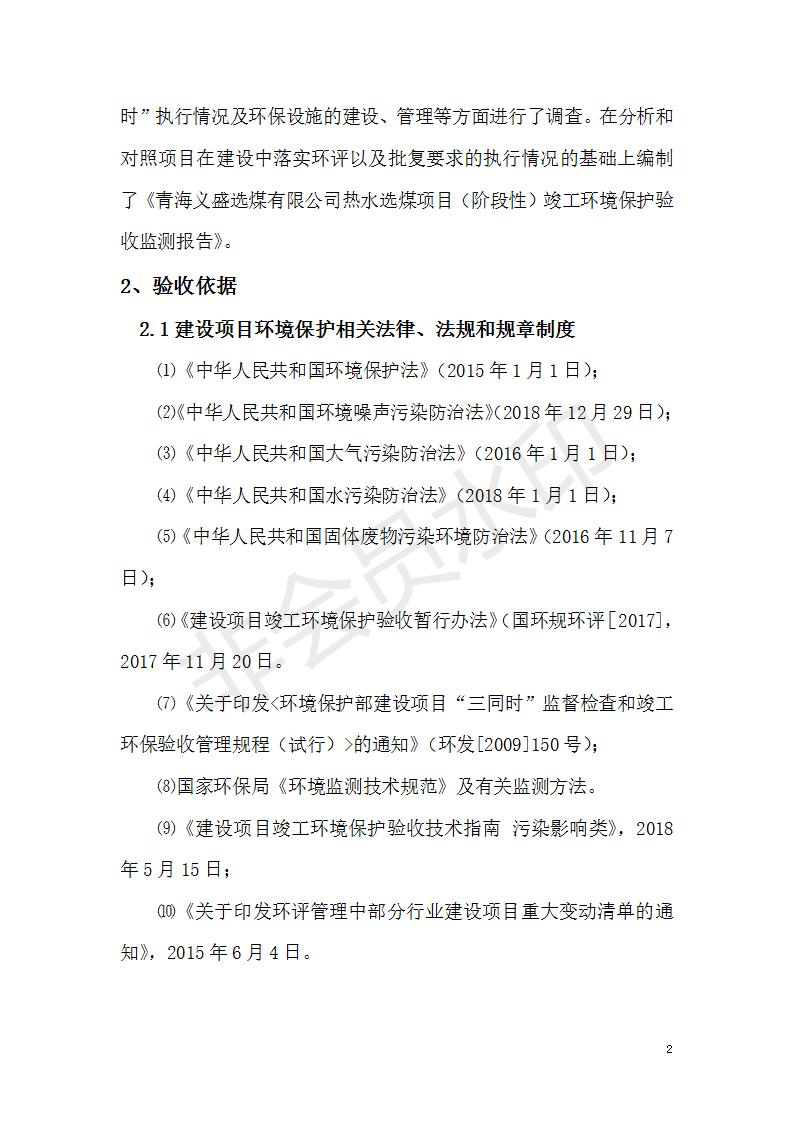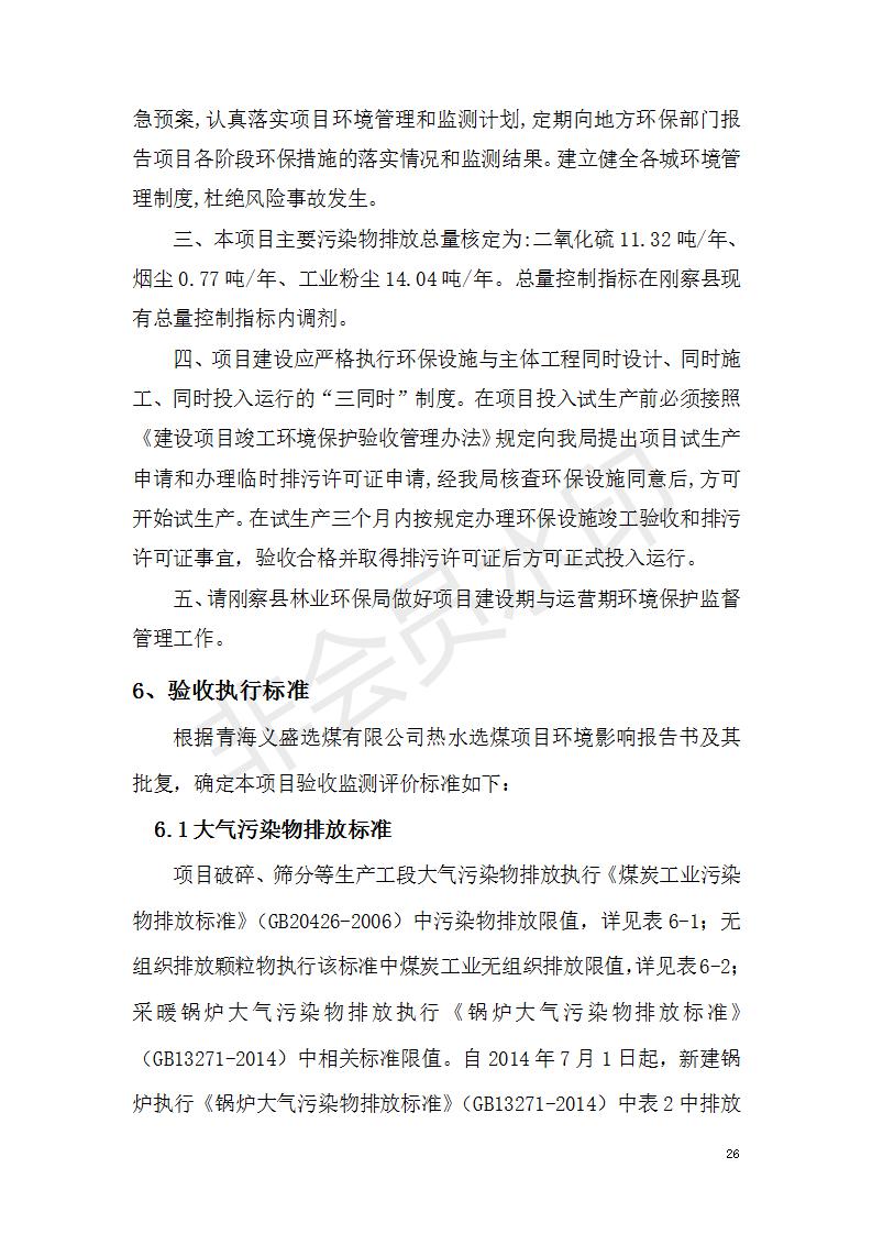 根據(jù)中華人民共和國(guó)國(guó)務(wù)院令第682號(hào)《國(guó)務(wù)院關(guān)于修改〈建設(shè)項(xiàng)目環(huán)境保護(hù)管理?xiàng)l例〉的決定》和《建設(shè)項(xiàng)目竣工環(huán)境保護(hù)驗(yàn)收暫行辦法》(國(guó)務(wù)院令682號(hào)),青海義盛選煤有限公司熱水選煤項(xiàng)目(階段性)竣工環(huán)境保護(hù)驗(yàn)收監(jiān)測(cè)報(bào)告(包括竣工環(huán)境保護(hù)驗(yàn)收監(jiān)測(cè)報(bào)告和驗(yàn)收意見(jiàn))公示如下。 一、項(xiàng)目名稱:青海義盛選煤有限公司熱水選煤項(xiàng)目(階段性) 二、地點(diǎn):剛察縣熱水鎮(zhèn) 此外還包括公用工程系統(tǒng)、消防系統(tǒng)及輔助生產(chǎn)設(shè)施等。 五、聯(lián)系人:張工六、聯(lián)系電話:0971-6515411 七、公示時(shí)間:二〇一九年十一月十二日至二〇一九年十二月九日