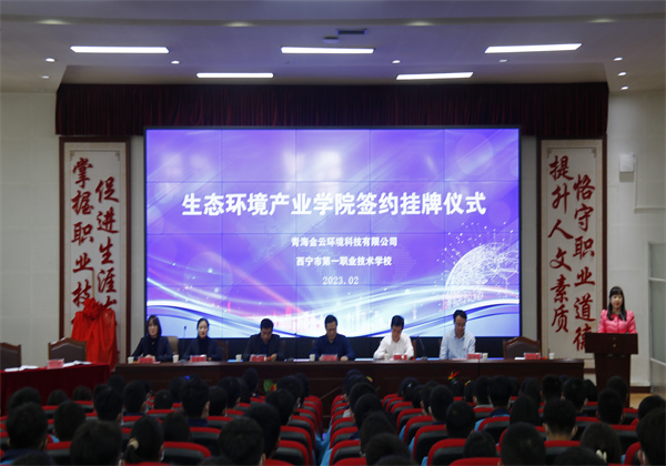 為深入貫徹落實(shí)職業(yè)教育現(xiàn)場(chǎng)推進(jìn)會(huì)精神,深化產(chǎn)教融合校企合作,2023年2月23日,西寧市第一職業(yè)技術(shù)學(xué)校與青海金云環(huán)境科技有限公司隆重舉行校企生態(tài)環(huán)境產(chǎn)業(yè)學(xué)院簽約掛牌儀式。西寧市教育局領(lǐng)導(dǎo),西寧市第一職業(yè)技術(shù)學(xué)校領(lǐng)導(dǎo)及生態(tài)環(huán)境產(chǎn)業(yè)學(xué)院師生,金云科技高層領(lǐng)導(dǎo)出席簽約儀式。儀式由西寧第一職業(yè)技術(shù)學(xué)校黨委書記、校長(zhǎng)金耀東主持。